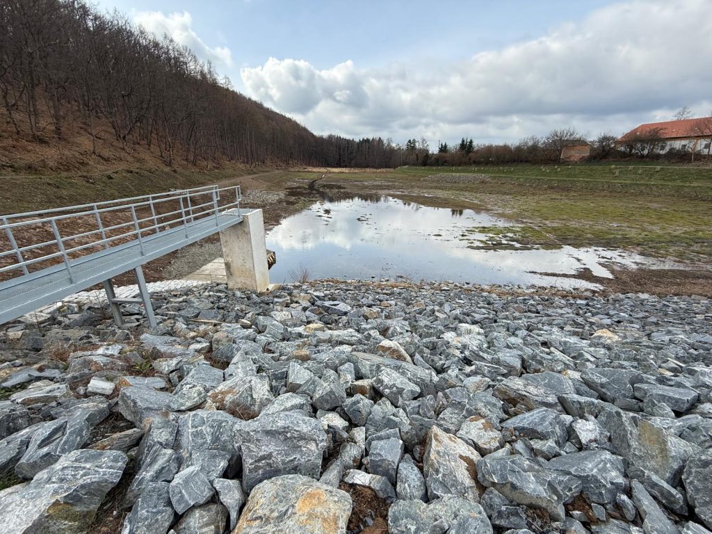Po sedmi letech do Prostředního rybníka zase proudí voda. A už tu zůstane, protože plocha zátopy je již hotova.