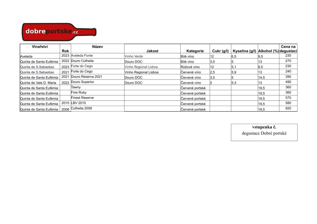 Součástí ochutnávky jsou také kvalitní portugalská vína (naopak) s nižším alkoholem – pod 10 %.