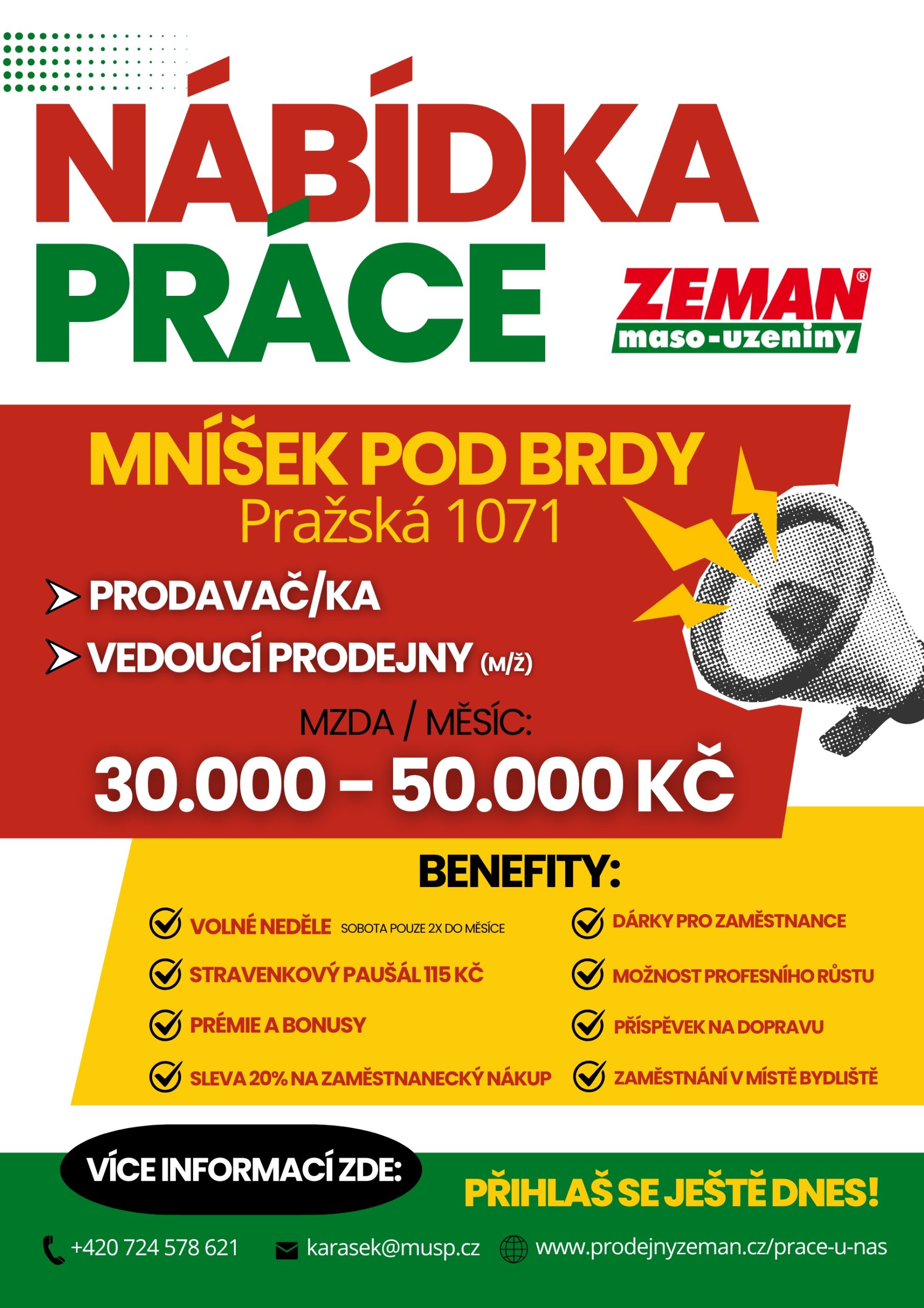 Do řeznictví ZEMAN maso-uzeniny (Mníšek pod Brdy, Pražská 1071) přijmeme Prodavače/Prodavačky a Vedoucí prodejny.