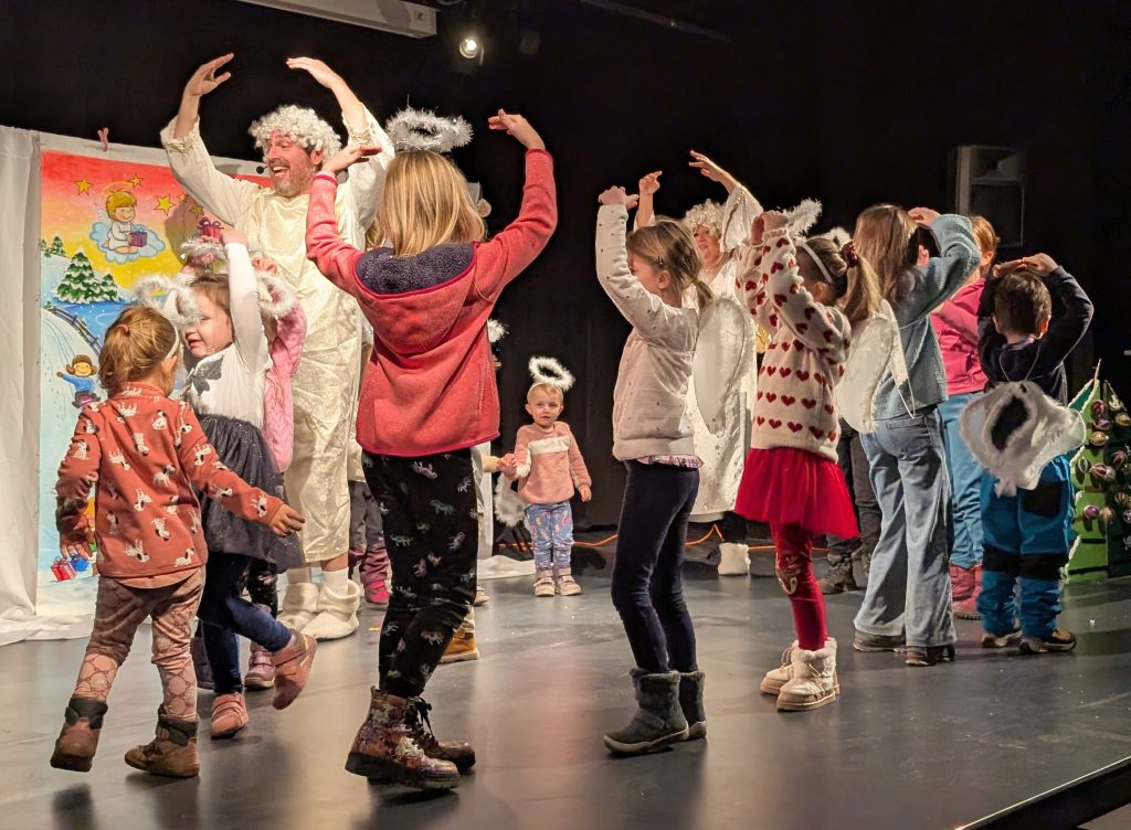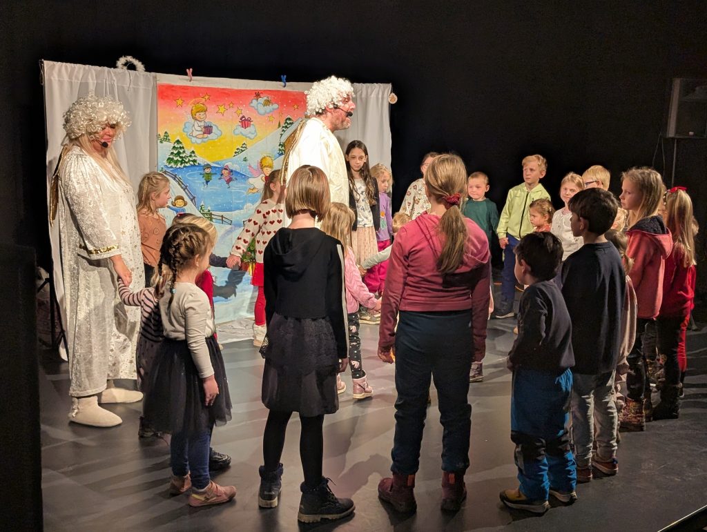 Pořadem provázeli dva andělé, kteří připravují Vánoce, ale mají tolik práce, že potřebují od dětí z publika pomoct. Děti s anděly zdobily vánoční stromek, hrály na hudební nástroje jako kapela a zažily také koulovačku. Spolu s anděly tančily a zpívaly české koledy. Pomocí kouzelného sněhu, který andělé roznesly v sálu (k malé radosti uklízeček) si všichni mohli přát i ta nejtajnější přání.