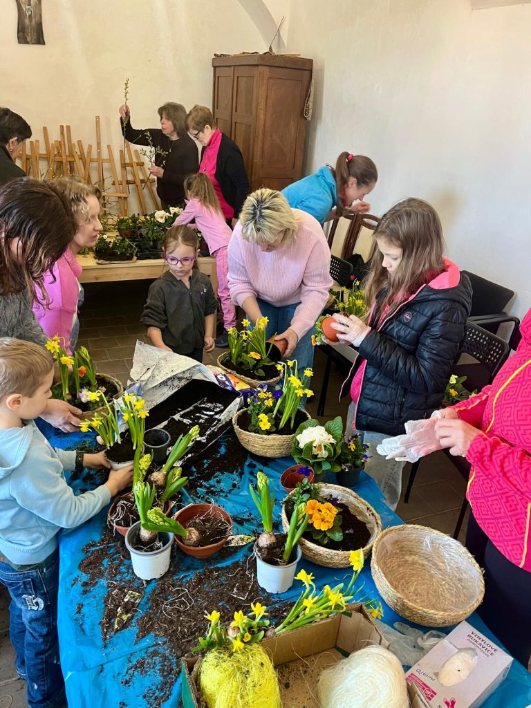 Poslední březnovou sobotu se v budově Oáza na mníšecké Farní zahradě uskutečnila tvořivá dílna pro děti i dospělé. Jejím tématem byla výroba velikonočních dekorací: madeirských kraslic a zdobených květináčů.