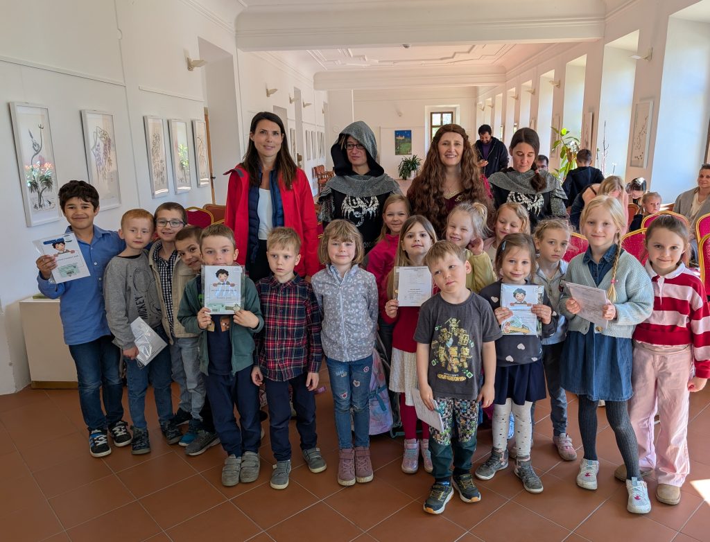 V sálu skaleckého kláštera na prvňáky čekala hraběnka Benedikta Čejková z Olbramovic, která je mezi čtenáře uvedla položením meče na rameno a slavnostní formulí: „Pasuji Tě na čtenáře a vítám Tě do světa fantazie!“