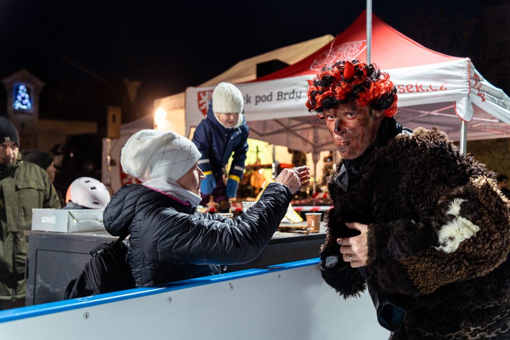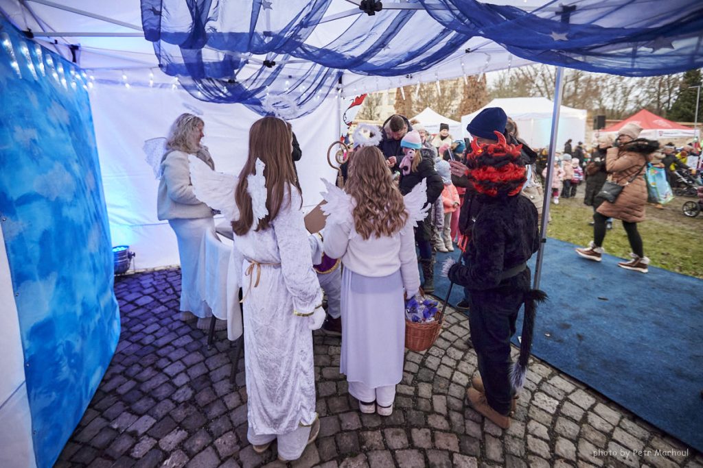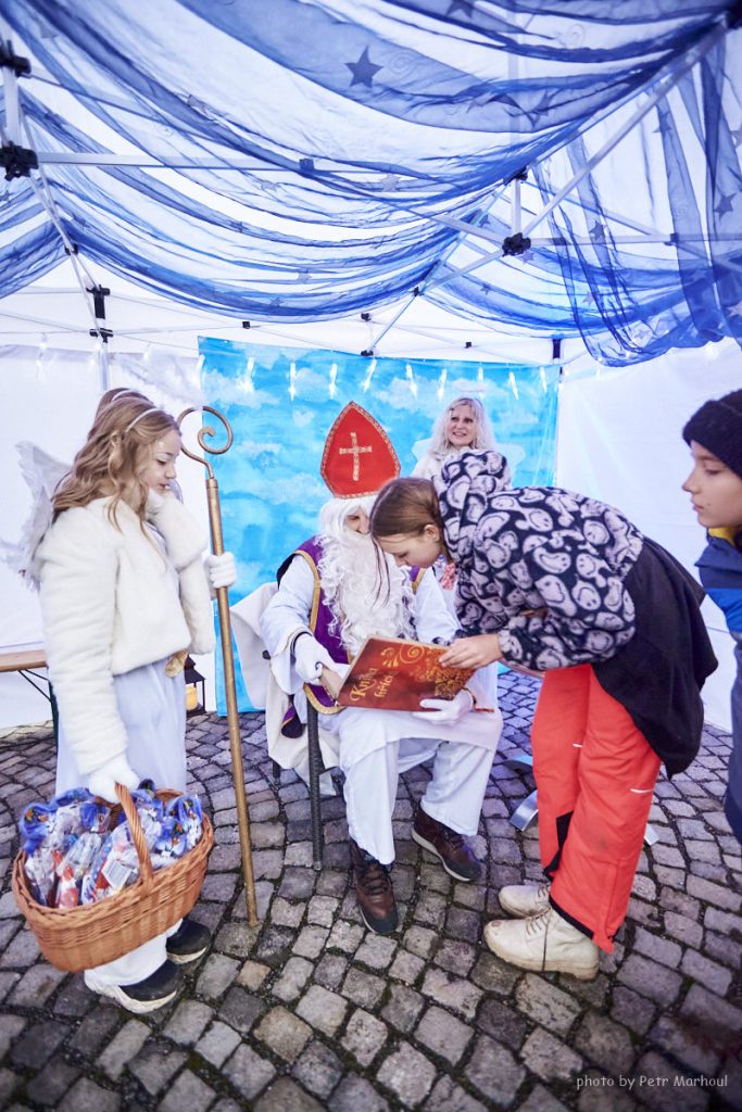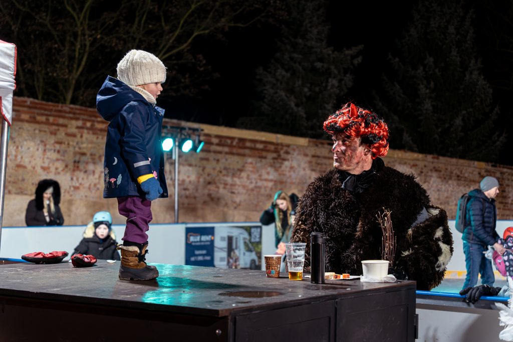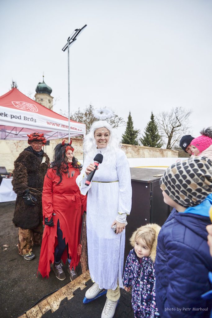 Mníšecký Sokol si pro děti připravil Mikulášskou nadílku, a tak se to za chvíli na ledu i vedle ledu hemžilo čerty a anděly. Za básničku nebo písničku dostaly děti sladkou odměnu. V pauzách mezi programem hrál Dj Tomáš. O zábavu se starala i Hana Šurkovská, která si na ledě pro děti připravila hry – učily se padat, jela se mašinka, papírovými koulemi trefovali projíždějícího čerta.