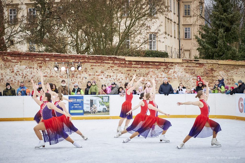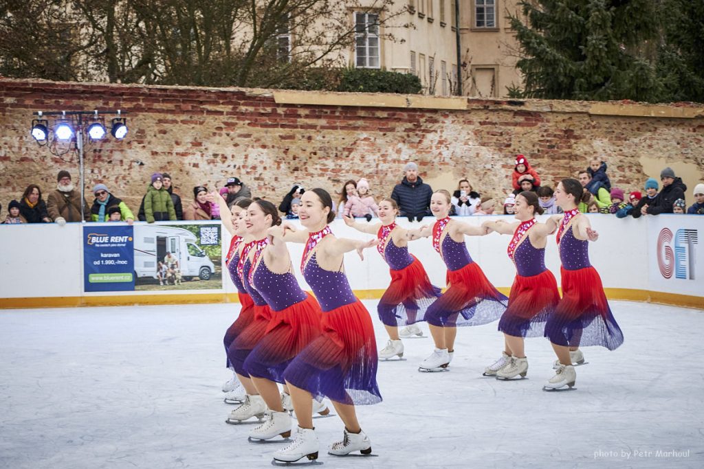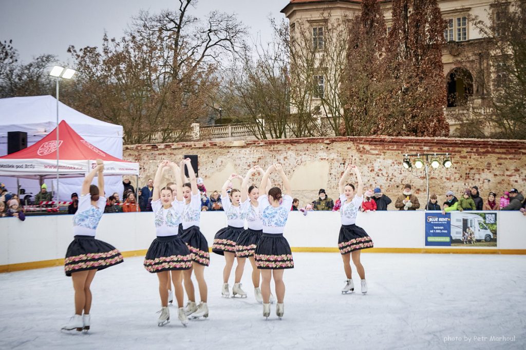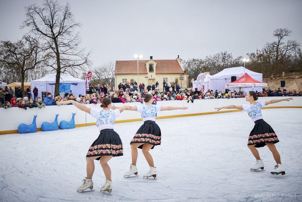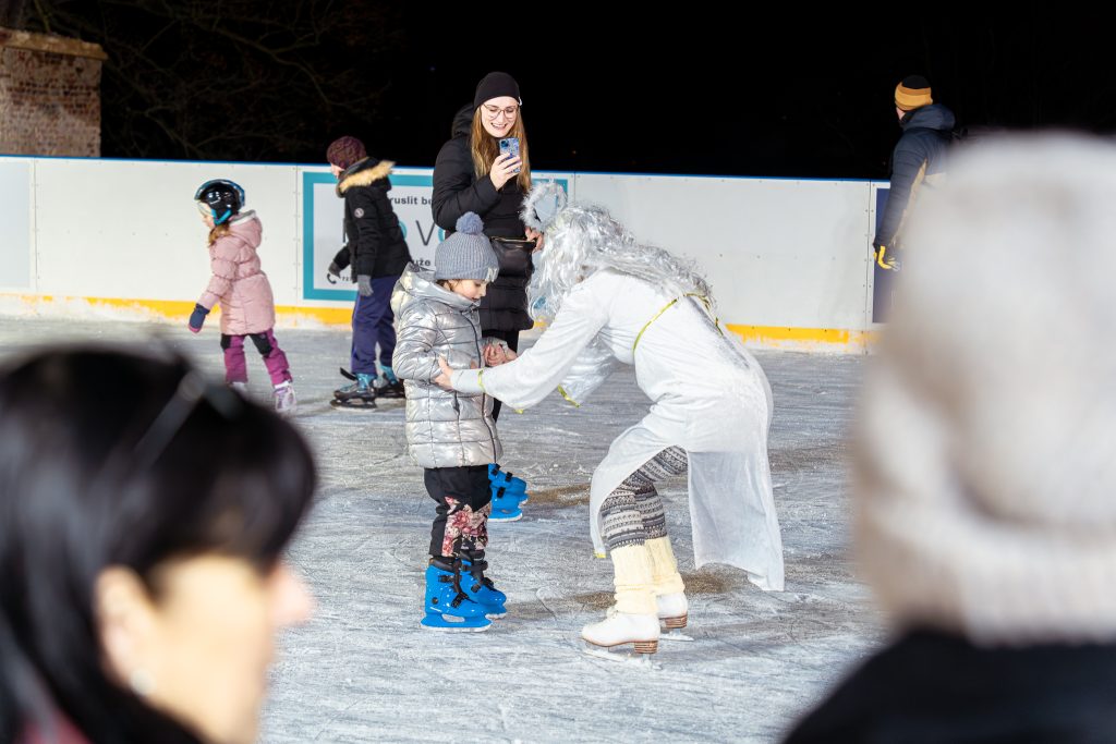 Slavnostní událost si nenechaly ujít stovky lidí. Po přestřižení pásky, ke kterému byli pozváni i malí návštěvníci, následovalo exhibiční vystoupení nejlepšího českého týmu synchronizovaného bruslení Olympia USK Praha. Na první vystoupení použili kostýmy i doprovodnou hudbu laděné do folklóru. Druhé jejich vystoupení bylo na vánoční téma. Své umění na ledě také předvedlo několik sólových bruslařů a bruslařek a jeden taneční pár původem z Ukrajiny.