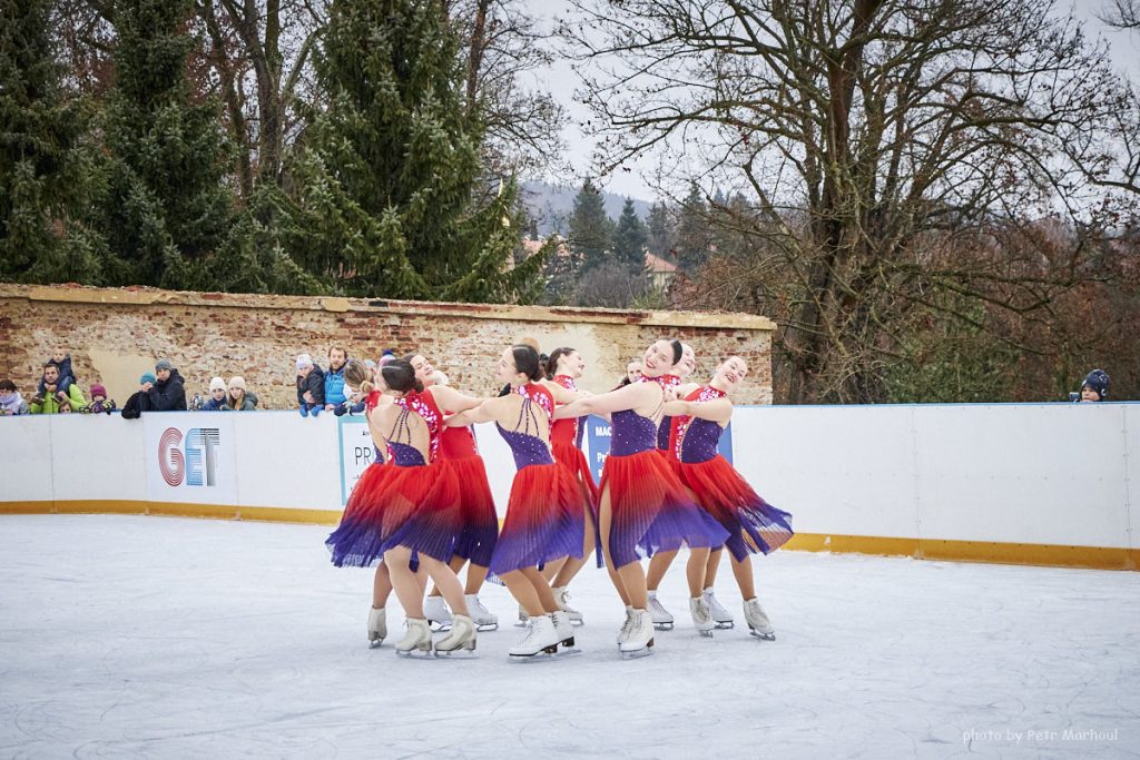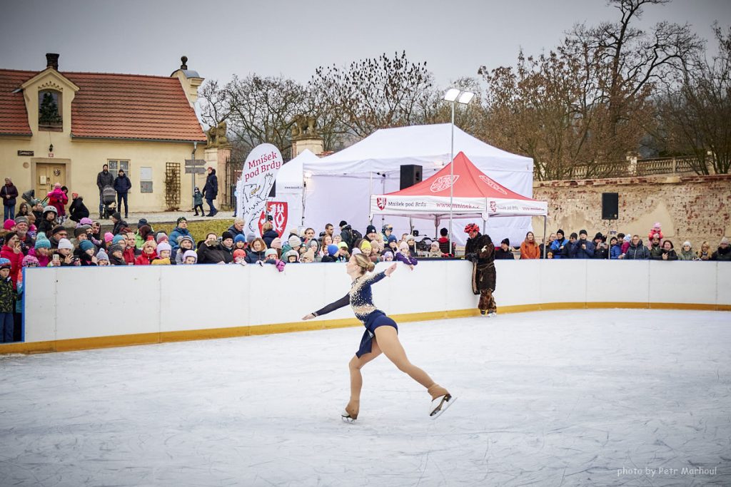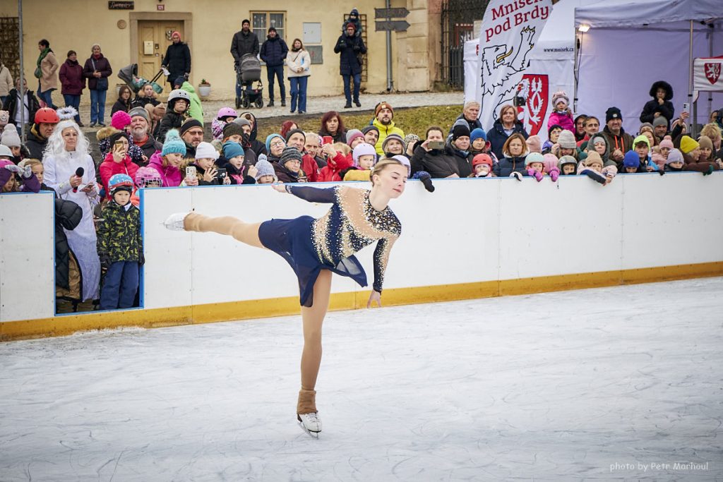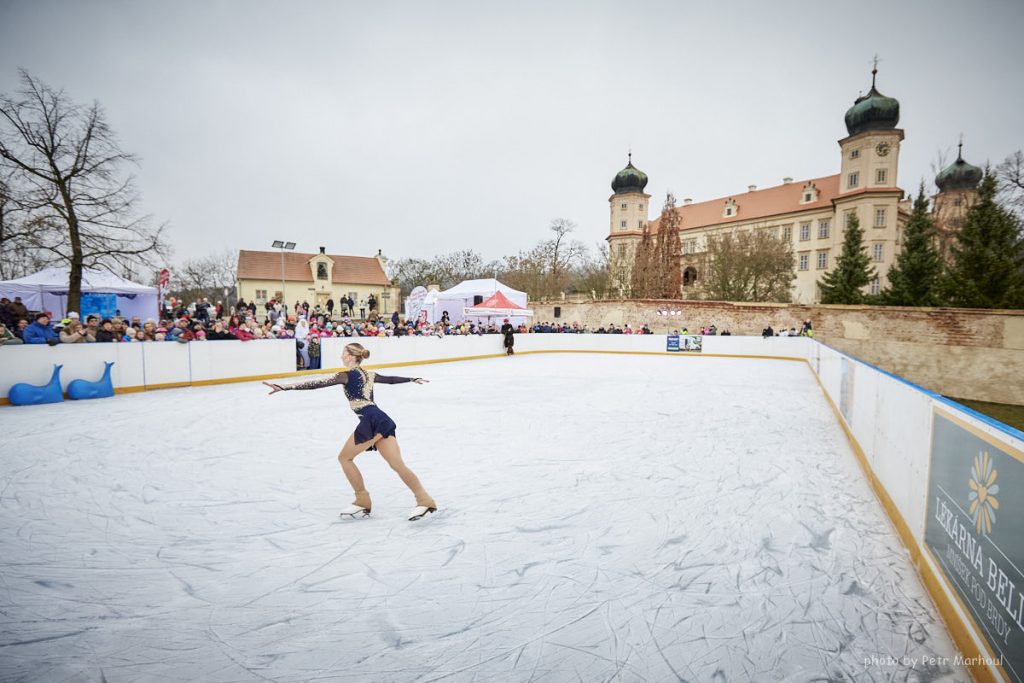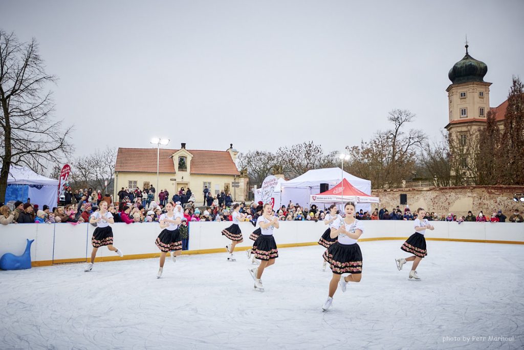 Slavnostní událost si nenechaly ujít stovky lidí. Po přestřižení pásky, ke kterému byli pozváni i malí návštěvníci, následovalo exhibiční vystoupení nejlepšího českého týmu synchronizovaného bruslení Olympia USK Praha. Na první vystoupení použili kostýmy i doprovodnou hudbu laděné do folklóru. Druhé jejich vystoupení bylo na vánoční téma. Své umění na ledě také předvedlo několik sólových bruslařů a bruslařek a jeden taneční pár původem z Ukrajiny.