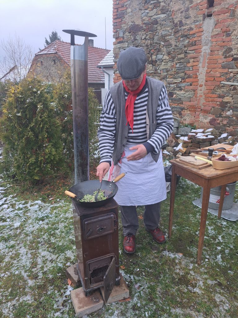 Návštěvníci si tak mohli připomenout, jak chystali vánoční svátky naši předkové v 19. století. Některé z nich snad ještě přetrvávají v našich rodinách dosud. Venku na kamnech připravoval Pučálník postní pokrm z naklíčeného hrachu zvaný pučálka, kterou zpestřoval slaninkou. Vysloužilý voják zase lil do studené vody roztavené olovo, aby podle výsledného tvaru zjistil, jaká ho čeká budoucnost. V příjemně vyhřáté budově Oáza se všichni věnovali dalším staročeským zvykům. Ze sušeného ovoce a oříšků se vyrábělo „Jablko zvané svět“, které nahoře značilo hojnost a dole chudobu.