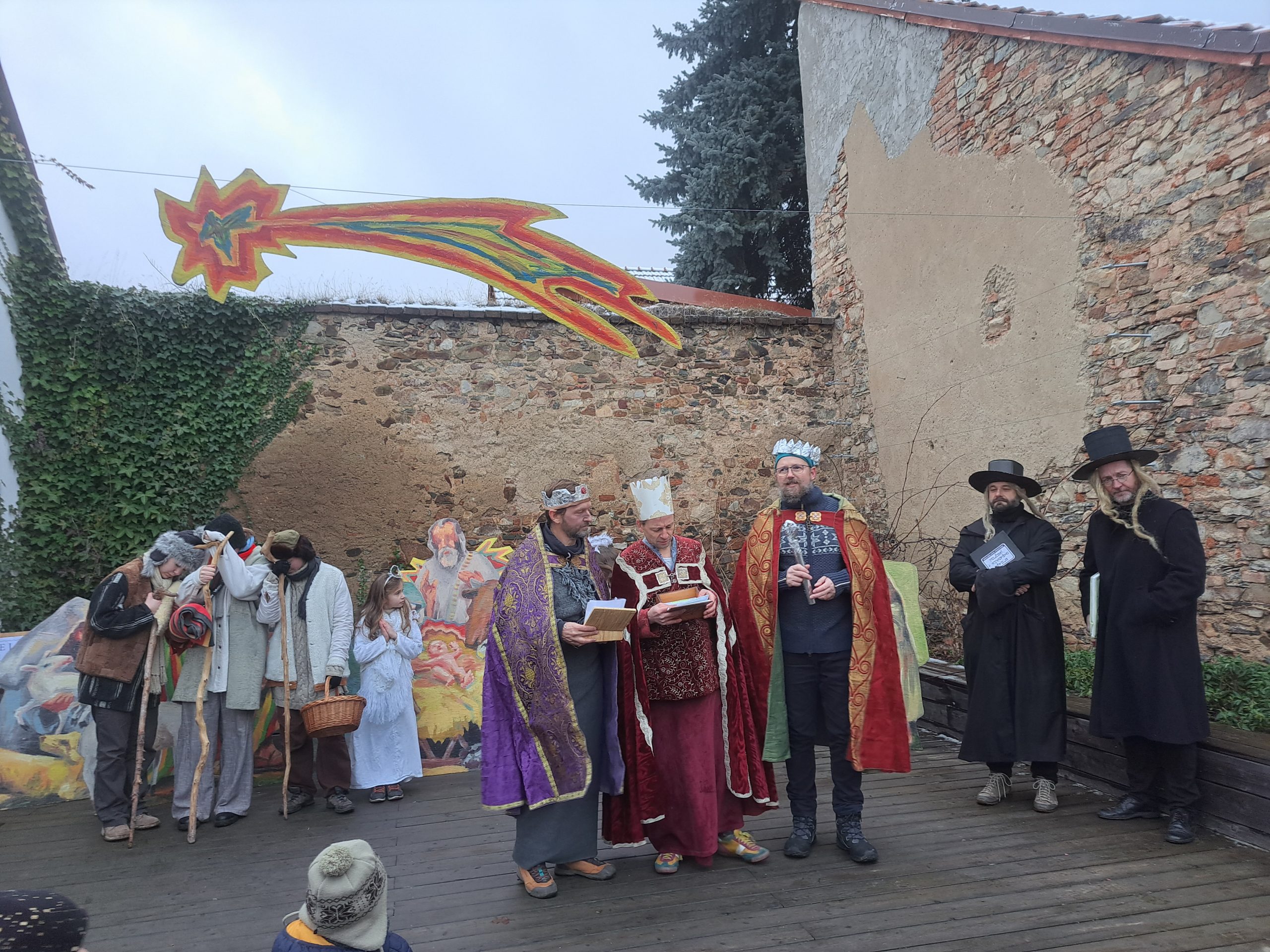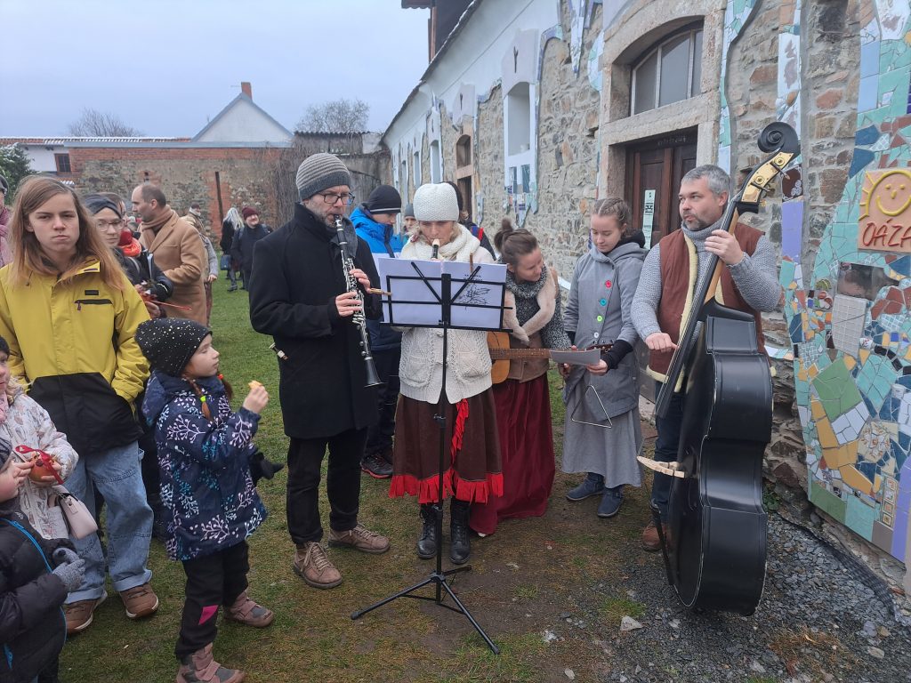 Organizátoři mysleli i na uspokojení chuťových buněk a za dobrovolný příspěvek byly k dispozici výtečný svařák a domácí sladké pečivo. Ukrajinští přátelé připravili boršč a golubce (zelné listy plněné mletým masem) se zakysanou smetanou. Venku na pódiu koncertoval Hvozdnický pěvecký sbor s adventními písněmi. Vrcholem akce byla dvě desetiminutová představení živého betlému, po právu pokaždé odměněná mohutným potleskem publika. Všichni herci své role zvládli bravurně, občasné přeřeknutí nebo polozapomenutý text jim shovívavé obecenstvo rádo odpustilo. Takto společně po sousedsky se bavili a příchod Spasitele oslavovali lidé, jak to před 150 lety zaznamenal folklorista a sběratel staročeských tradic Čeněk Zíbrt. Každý, kdo Farní zahradu navštívil, musel uznat, že naši předkové měli Vánoce rozmanitější a veselejší., a to i bez elektroniky.