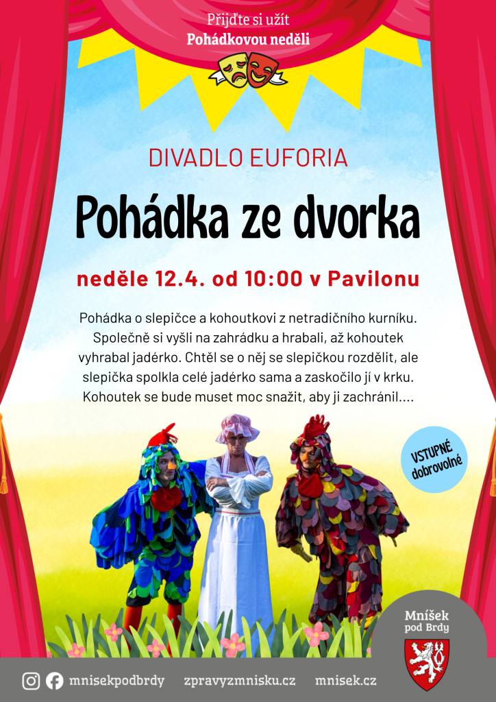 V neděli 12. dubna do Mníšku pod Brdy přijede Divadlo Euforia s Velikonoční pohádkou ze dvorka.