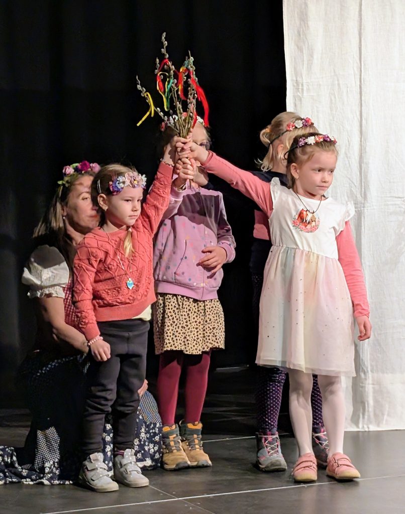Děti se za pomoci říkadel, popěvků a písniček, seznámily s několika lidovými zvyky doprovázejícími příchod jara.