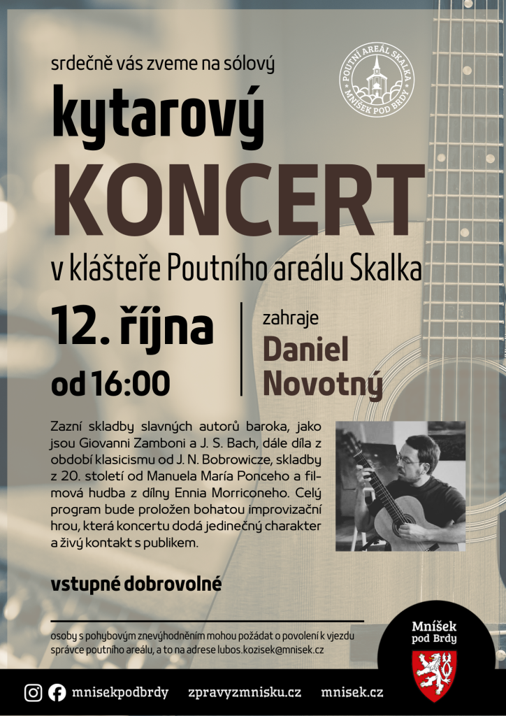 V neděli 12. října vystoupí od 16:00 v sálu bývalého skaleckého kláštera kytarista Daniel Novotný.
