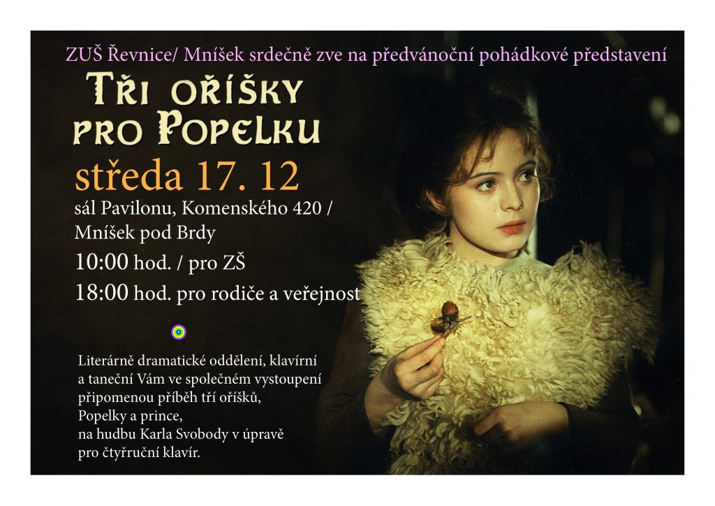 Ve středu 17. prosince se ve velkém sálu Pavilonu koná od 18:00 představení TŘI OŘÍŠKY PRO POPELKU.