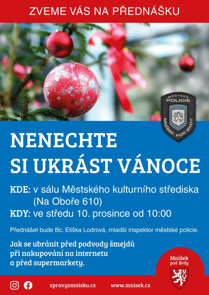 Městská policie zve na přednášku na téma: Nenechte si ukrást Vánoce