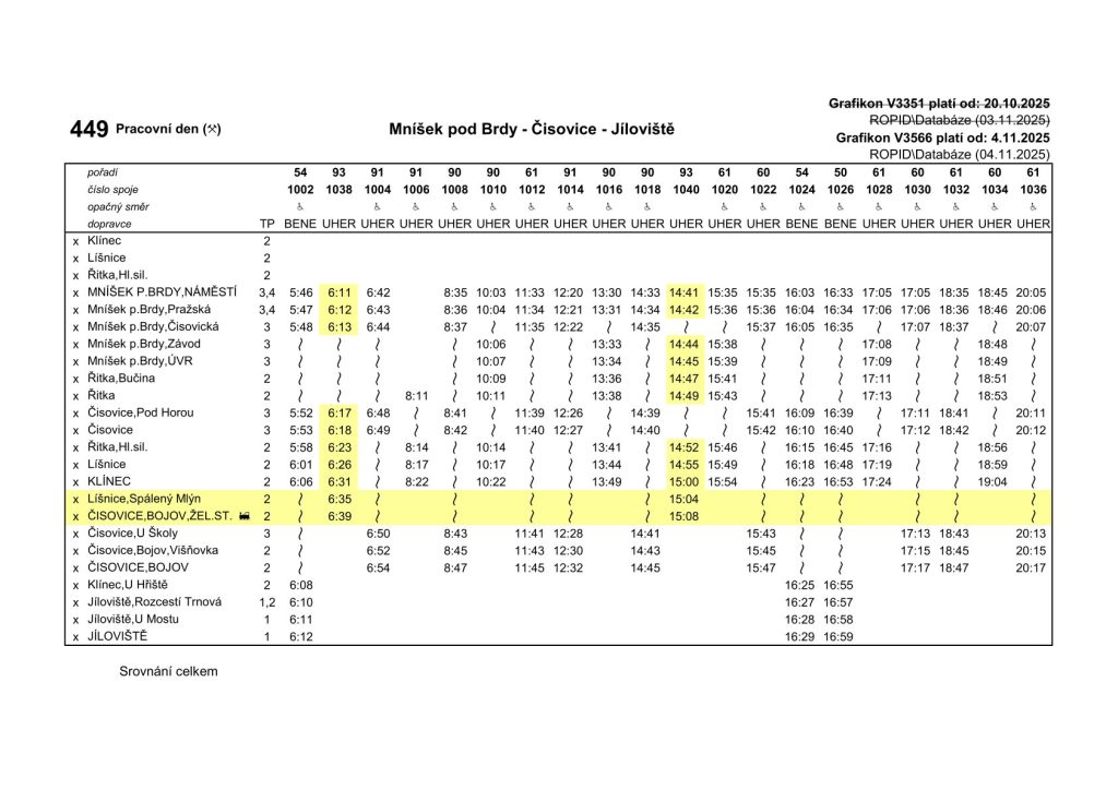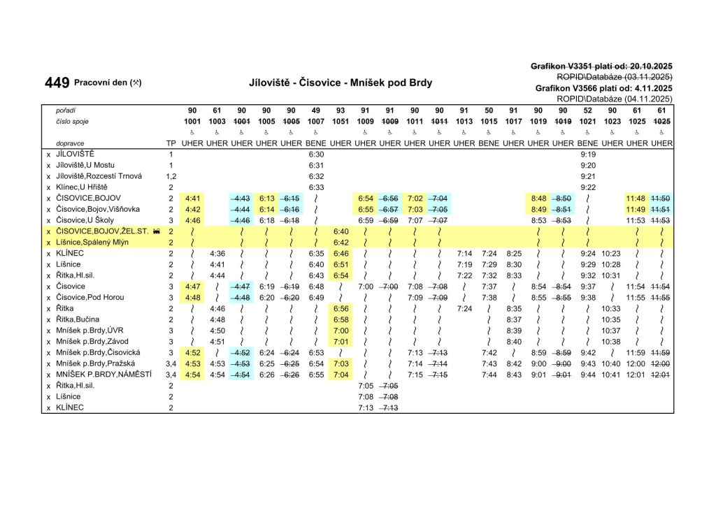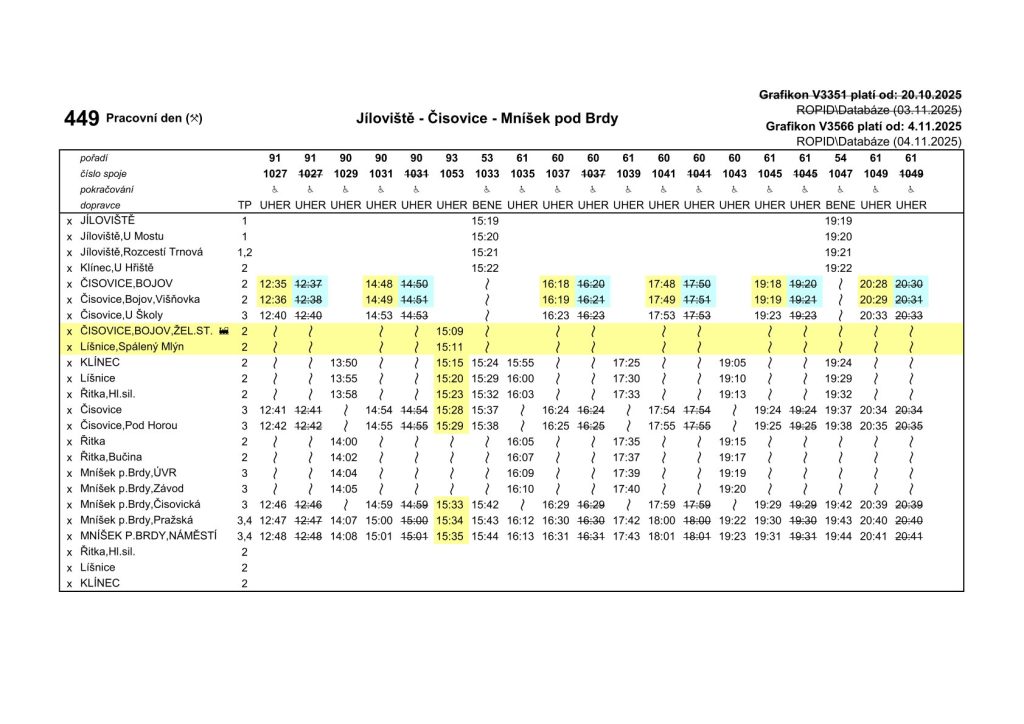 Od 4. listopadu dochází k dalším změnám v jízdním řádu linky 449: