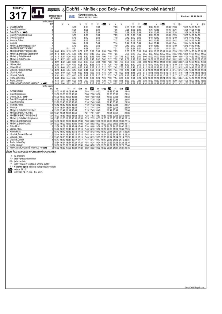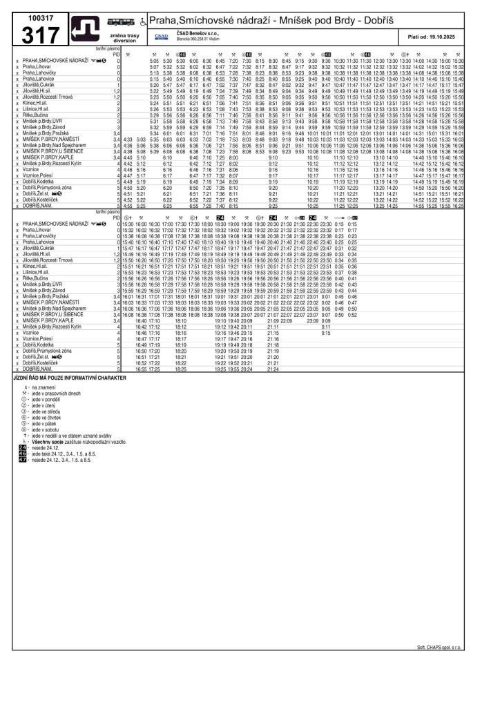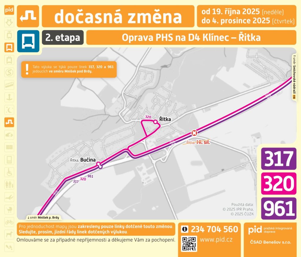 - Linky 317 a 961 budou jako náhradu obsluhovat zastávku „Řitka, Bučina“ a dále do Mníšku pojedou po trase linky 320.