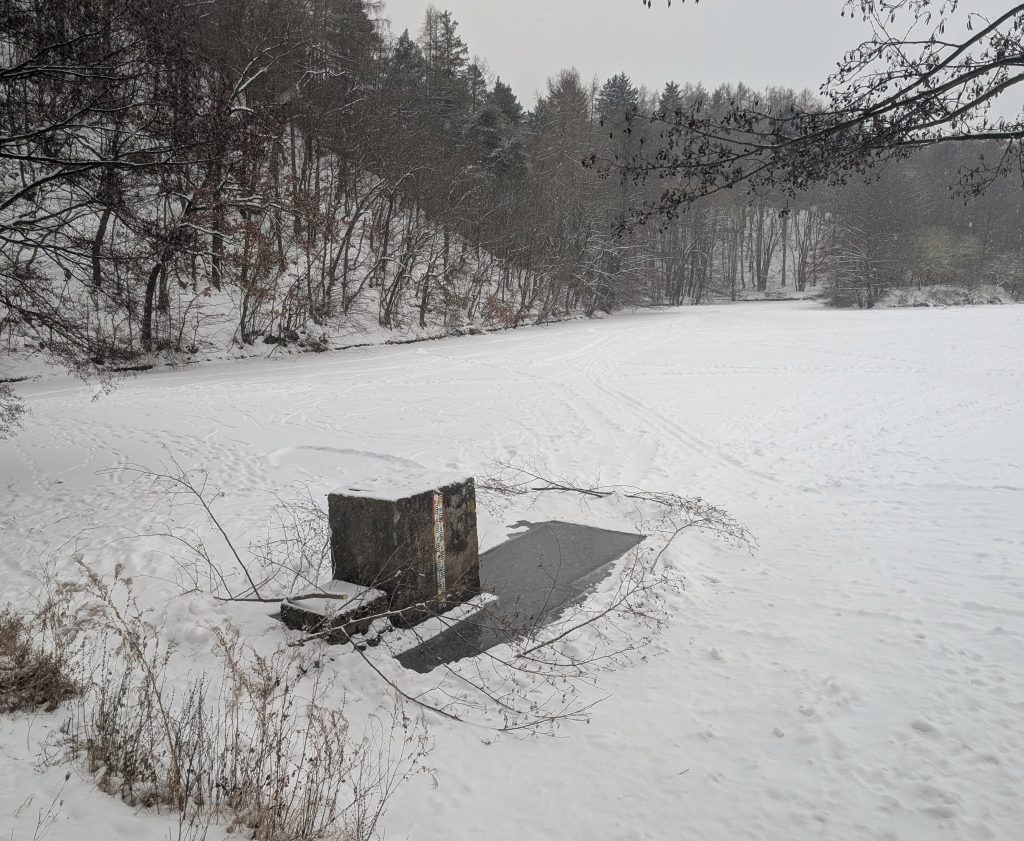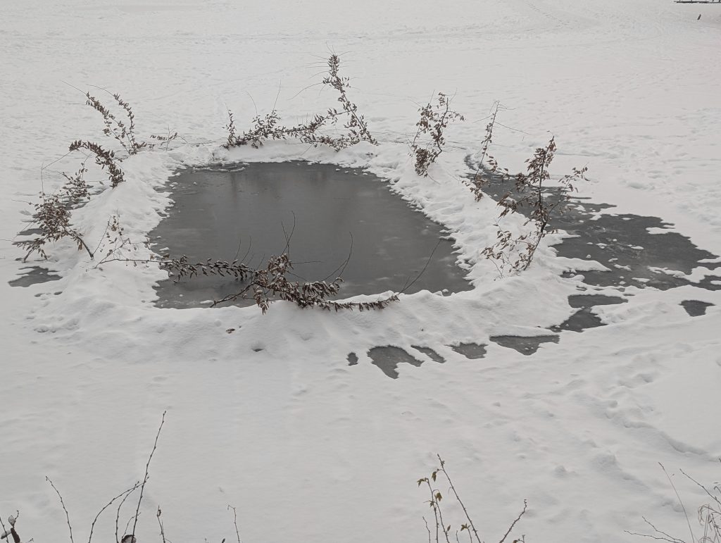 Díra v ledu na Zadním rybníku