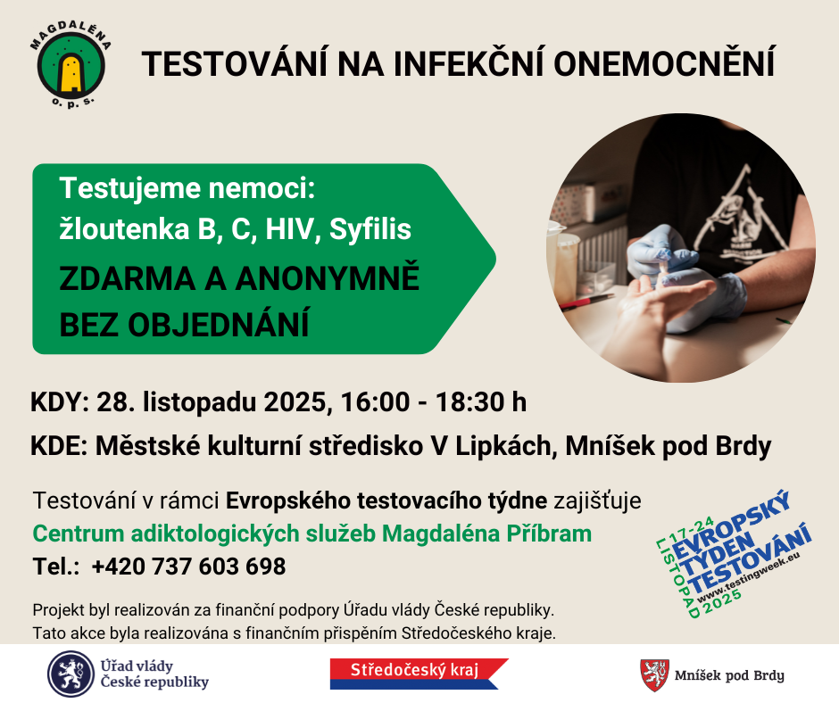 Testuje se na žloutenky typu B a C, HIV a syfilis. Anonymně, zdarma, rychle