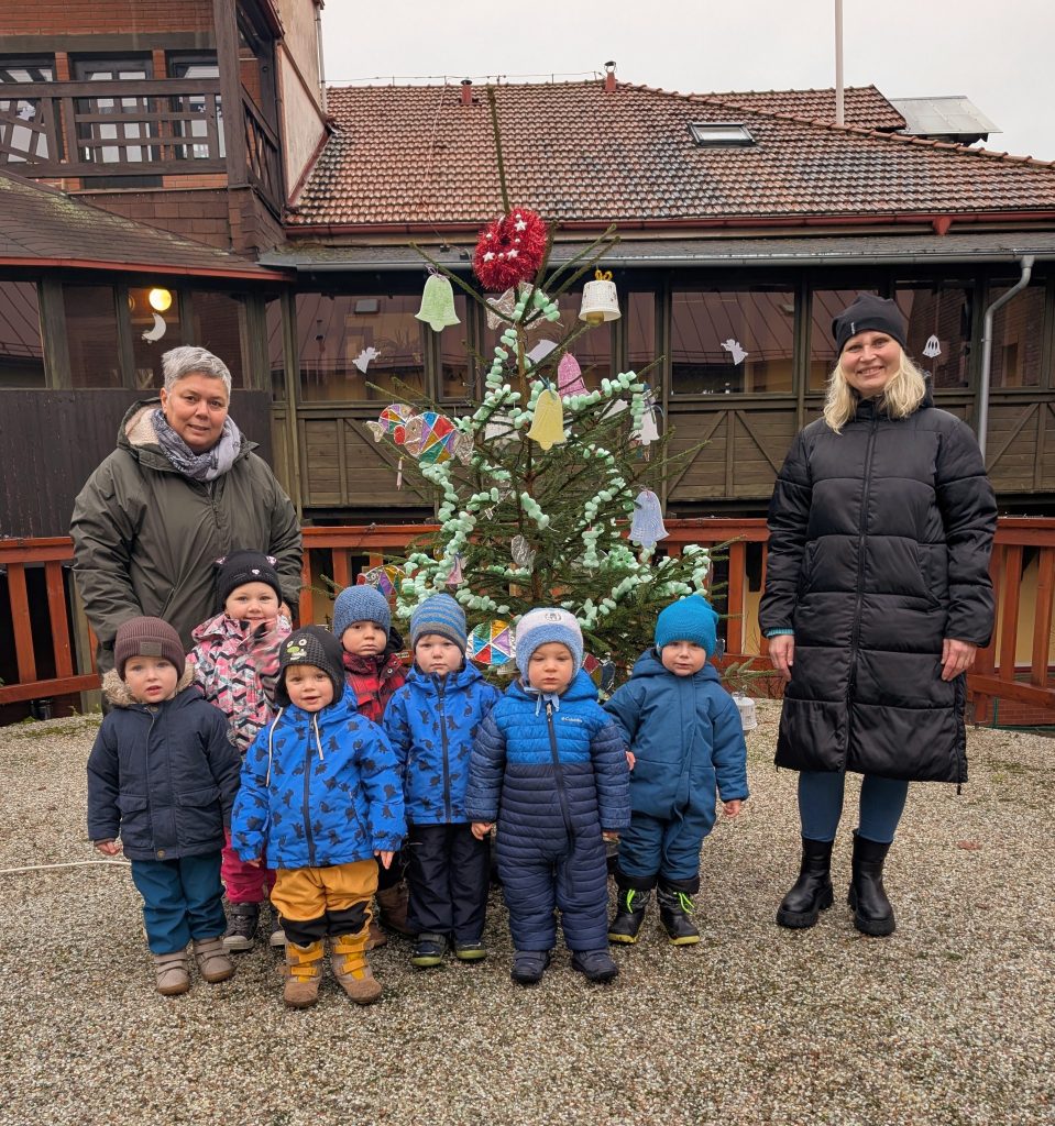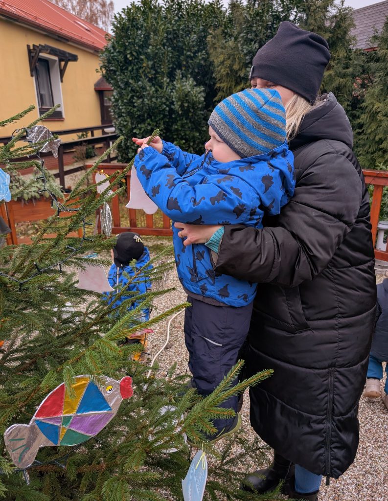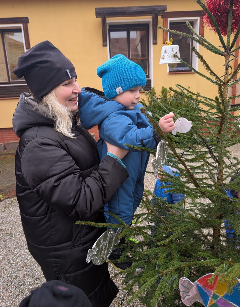 Celkem sedm dětí (ve věku od 2 do 4 let) z dětské skupiny HRAČIČKOVÉ navštívilo dnes Domov pro seniory Pod Skalkou, aby vánočně nazdobily stromeček.