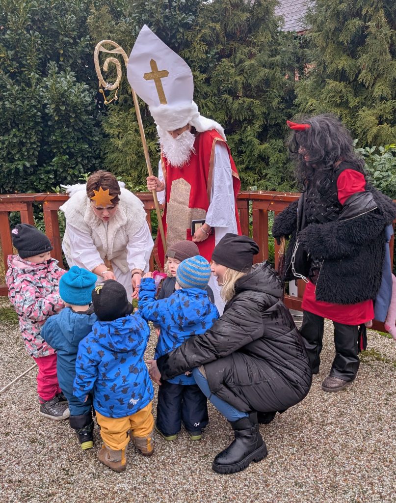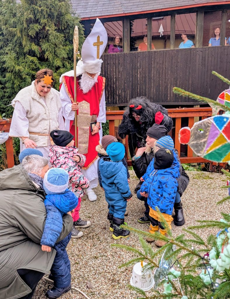 Na ozdobený stromeček se přišli podívat Mikuláš, Anděl i Čert a nebojácné děti jim zarecitovaly básničku, kterou se pro ně naučily: