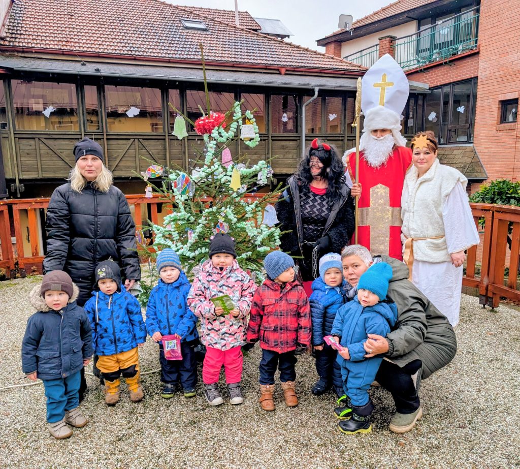 Na ozdobený stromeček se přišli podívat Mikuláš, Anděl i Čert a nebojácné děti jim zarecitovaly básničku, kterou se pro ně naučily: