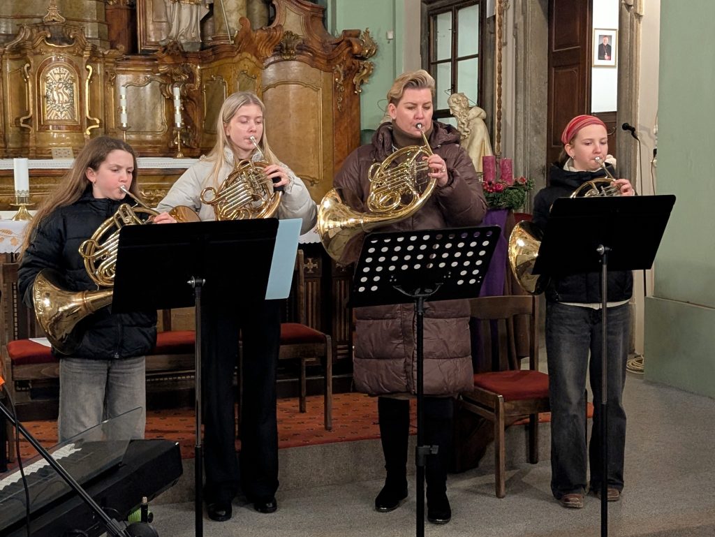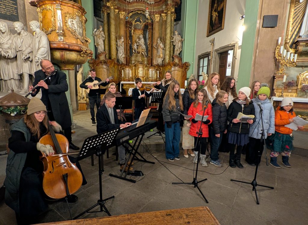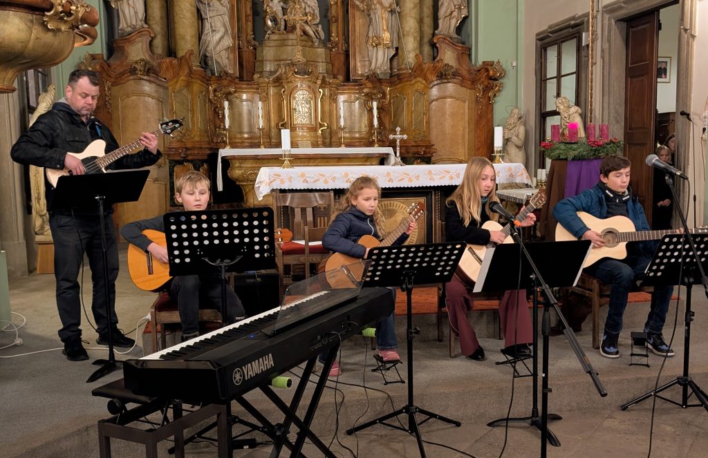 Na návštěvníky, především z řad příbuzných a kamarádů účinkujících dětí, čekala příjemná hodinka plná hudby na adventní a vánoční téma. Muziku střídala recitace. Během koncertu vystoupilo na 30 posluchačů a posluchaček základní umělecké školy ve věku od 8 do 17 let. Vesměs se jednalo o skladby, které žáci nacvičovali během podzimu a veřejným vystoupením chtěli potěšit především své rodiče i pedagogy. Některé z nich doprovázely na klavír, housle, kytaru, baskytaru, příčnou flétnu nebo lesní roh jejich učitelé a učitelky. Zazněly koledy z Čech, z dávných časů pocházející „Při Vánoci, dlouhý noci“, z moderní doby to byly „Půlnoční“ od Umakartu nebo Ebenova „Koleda“, i z Itálie „Do té slůje“ a Španělska „O Vánocích zpívám“. Akci zakončil společný koncert čtyř lesních rohů.