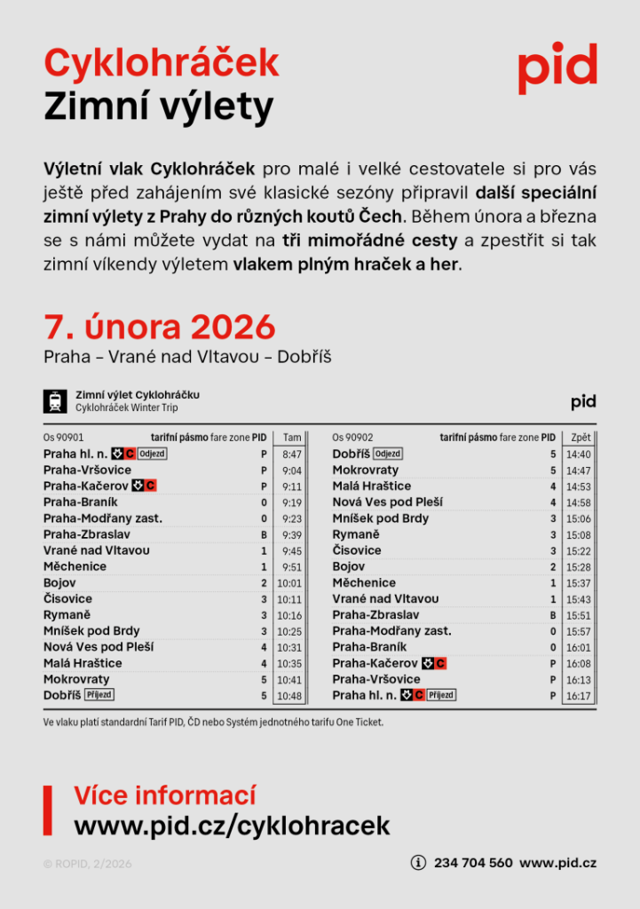Jízdní řád Zimního výletu s Cyklohráčkem: