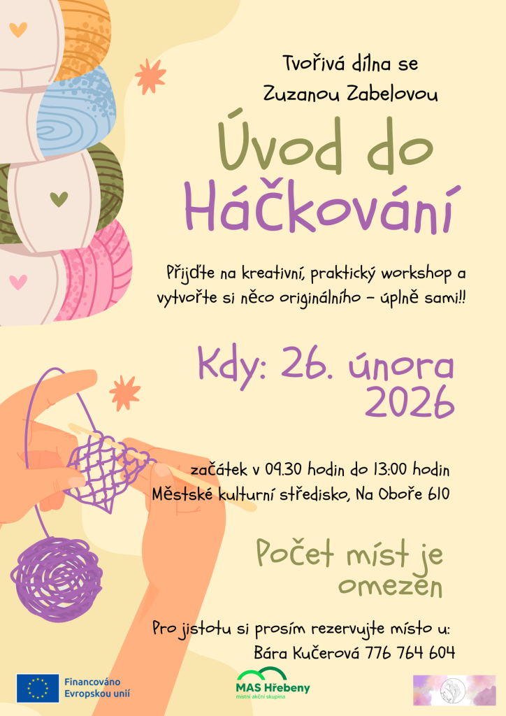 Ve čtvrtek 26. února se uskuteční kreativní workshop s názvem ÚVOD KDO HÁČKOVÁNÍ.