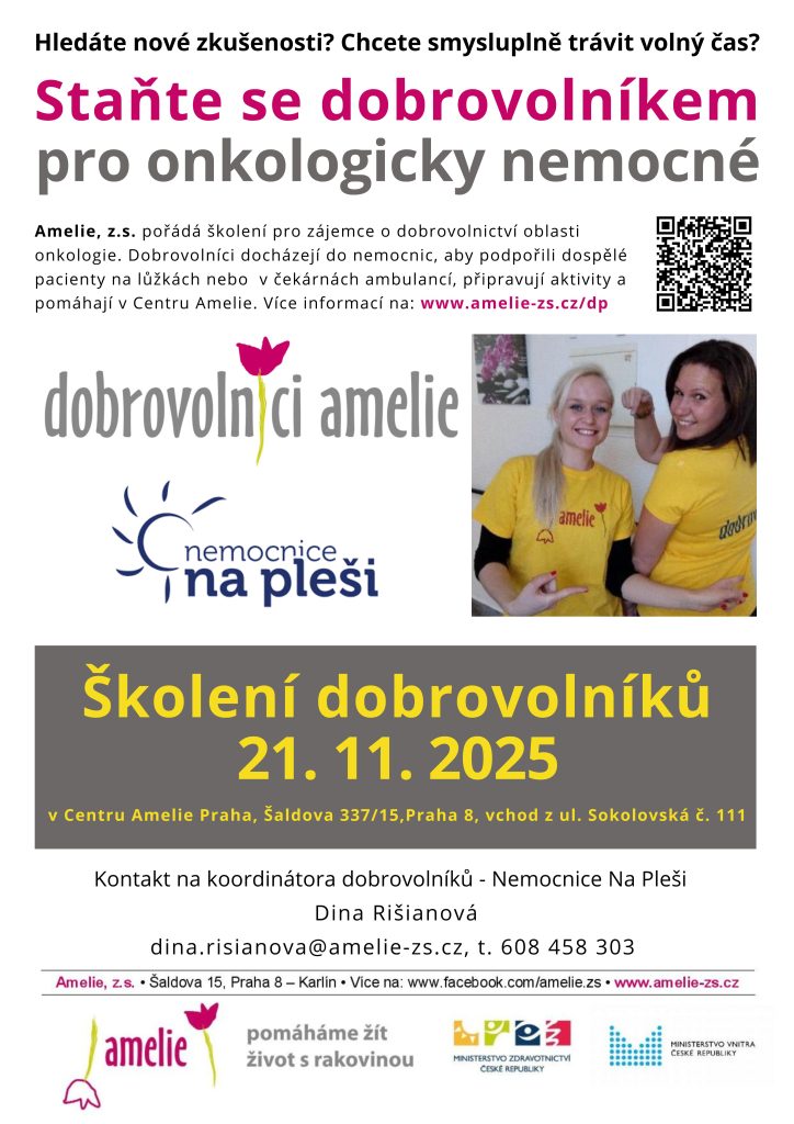 Chcete se připojit týmu Amelie? Máme pro vás skvělou příležitost! Chystáme školení pro nové dobrovolníky: v pátek 21. listopadu.