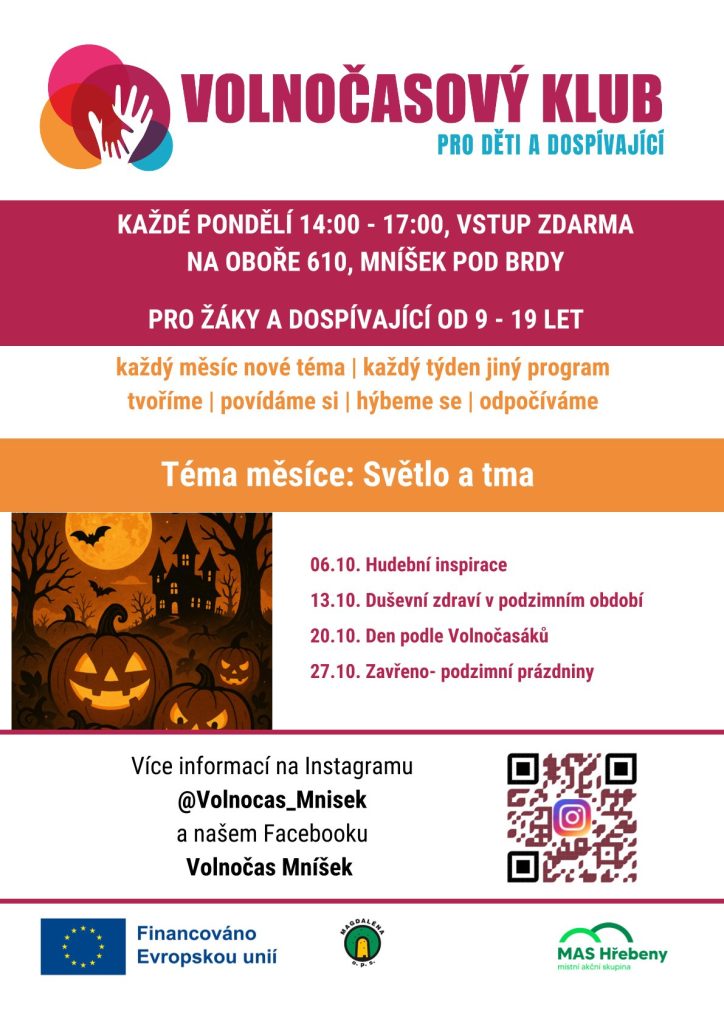 Volnočasový klub pro žáky a mládež od 9 do 19 let najdete v přízemí Městského kulturního střediska V Lipkách, v ulici Na Oboře 610. Klub je otevřen každé pondělí od 14 do 17 hodin zdarma.