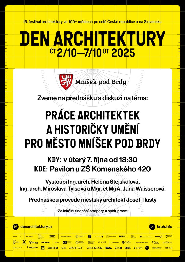 V úterý 7. října se ve velkém sálu Pavilonu uskuteční přednáška na téma: PRÁCE ARCHITEKTEK A HISTORIČKY UMĚNÍ PRO MĚSTO MNÍŠEK POD BRDY – začíná od 18:30.