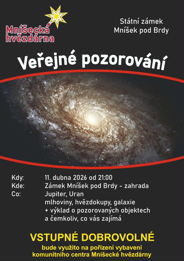 Mníšecká hvězdárna zve všechny milovníky astronomie na pozorování Jupiteru, Uranu, mlhoviny, hvězdokup a galaxií.