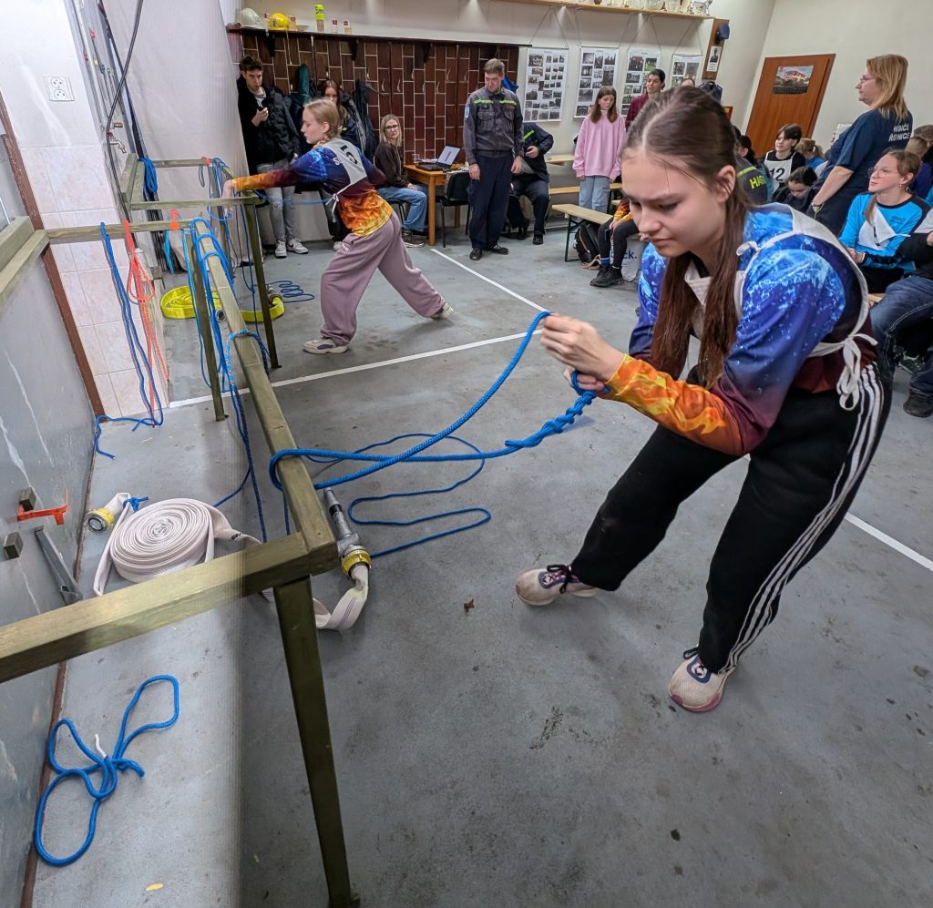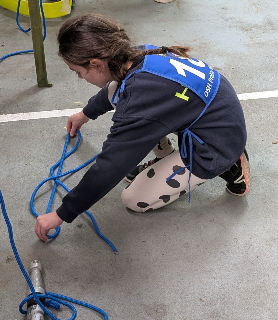 Na závodníky čekalo uvázání pěti uzlů: tesařského, lodního, záchranného, úvazu na proudnici a zkracovačky. Hodnotila se rychlost a zároveň kvalita uzlů. Mladí hasiči se tak měli možnost procvičit ve zručnosti. Každý soutěžící měl dva pokusy. Nejrychleji a zároveň bezchybně to ve svých kategoriích zvládly za 22 vteřin Lily Kloudová ze Zahořan (mladší žákyně) a za 19 vteřin Kateřina Havelková z Jíloviště (starší žákyně).