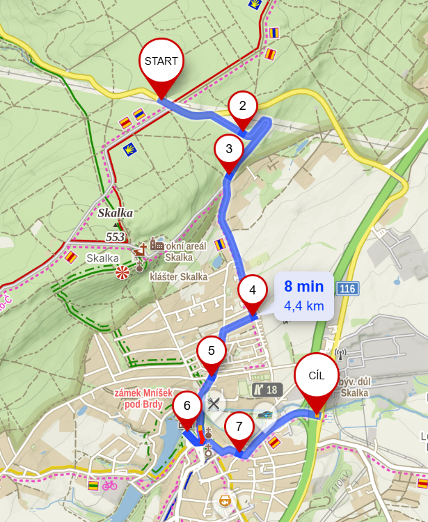 Část ulice Řevnická – v úseku od sjezdu ze silnice č. II/116 až po parkoviště Skalka – bude zjednosměrněna kvůli průjezdu závodníků (zhruba od 9:30 do 11:00) – na místě bude městská policie.