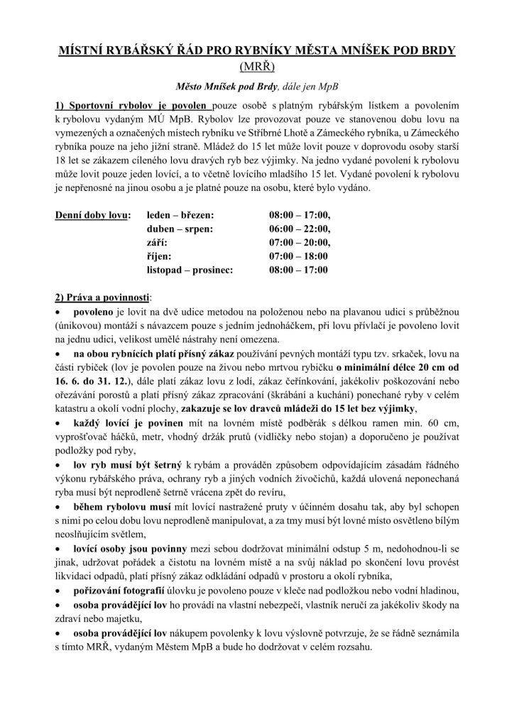 Místní rybářský řád:
