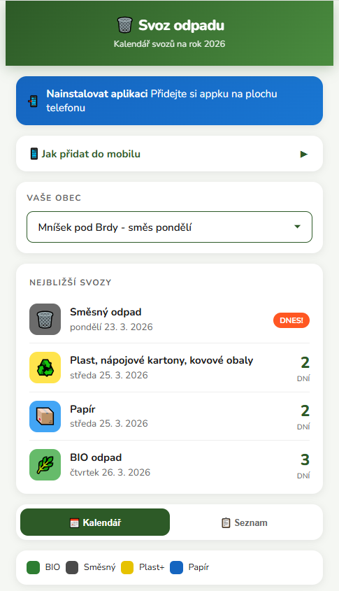 • Kalendář všech svozů