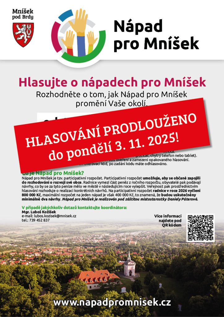 S výsledky hlasování i s návrhem či návrhy, které svými hlasy vyberete pro realizaci v roce 2026, vás seznámíme začátkem listopadu na webových stránkách www.zpravyzmnisku.cz a v prosincovém vydání Zpravodaje.