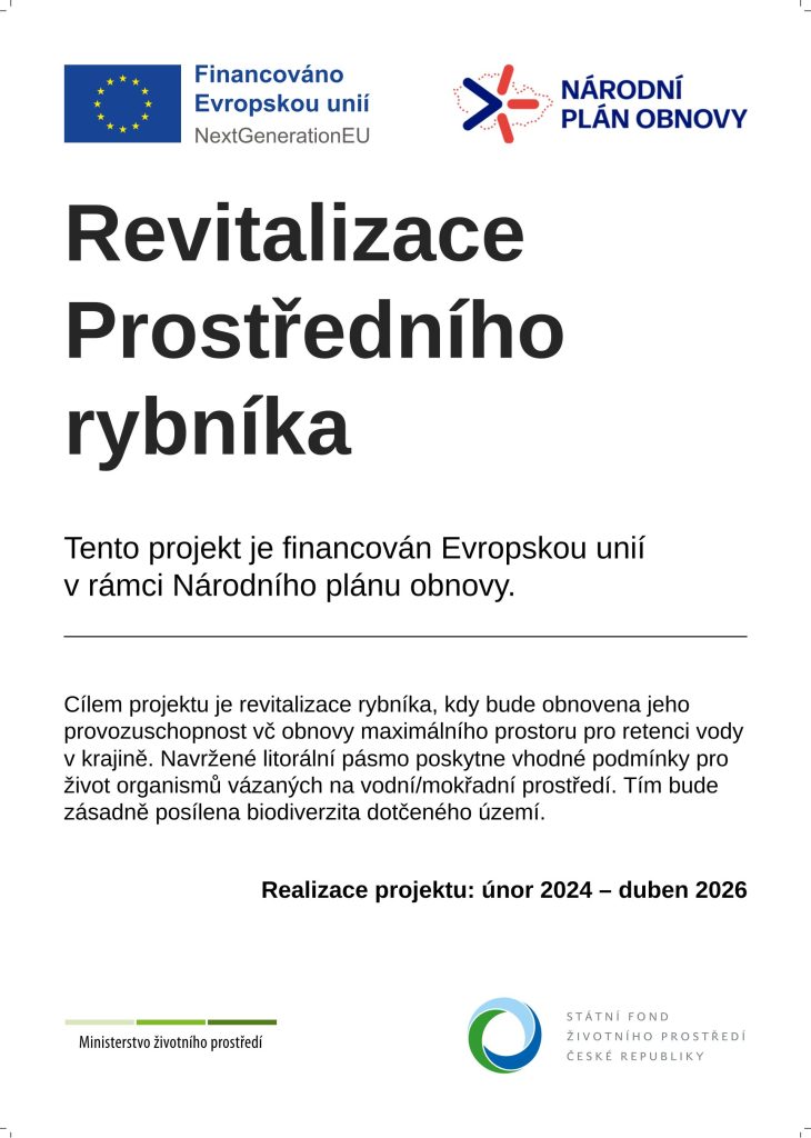Druhý únorový týden 2024 začne dlouho očekávaná REVITALIZACE PROSTŘEDNÍHO RYBNÍKA.